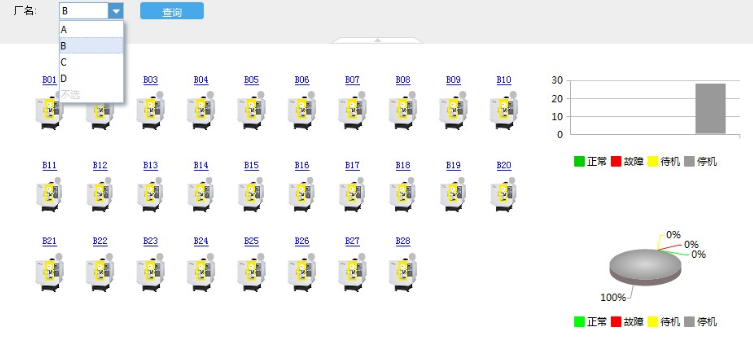 系統(tǒng)根據(jù)按車間級、廠級、集團級等不同級別提供相應的設備運行狀態(tài)畫面。