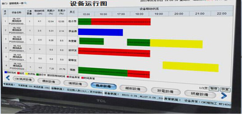 咪雀機床設備管理系統(tǒng)與生產(chǎn)設備連接,自動采集生產(chǎn)進度、設備狀態(tài)、工藝參數(shù)等并進行遠程監(jiān)控或者看板展示,管理人員在辦公室就很直觀的知道每臺設備的運行情況、設備是否在正常加工,并通過數(shù)據(jù)對設備進行設備綜合效率(OEE)分析,提高設備利用率,降低設備生產(chǎn)運維成本。